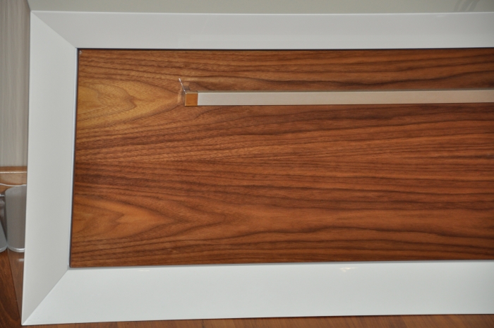 • 100% sijaj: bel MDF (=mediapan) in furnir ameriški oreh