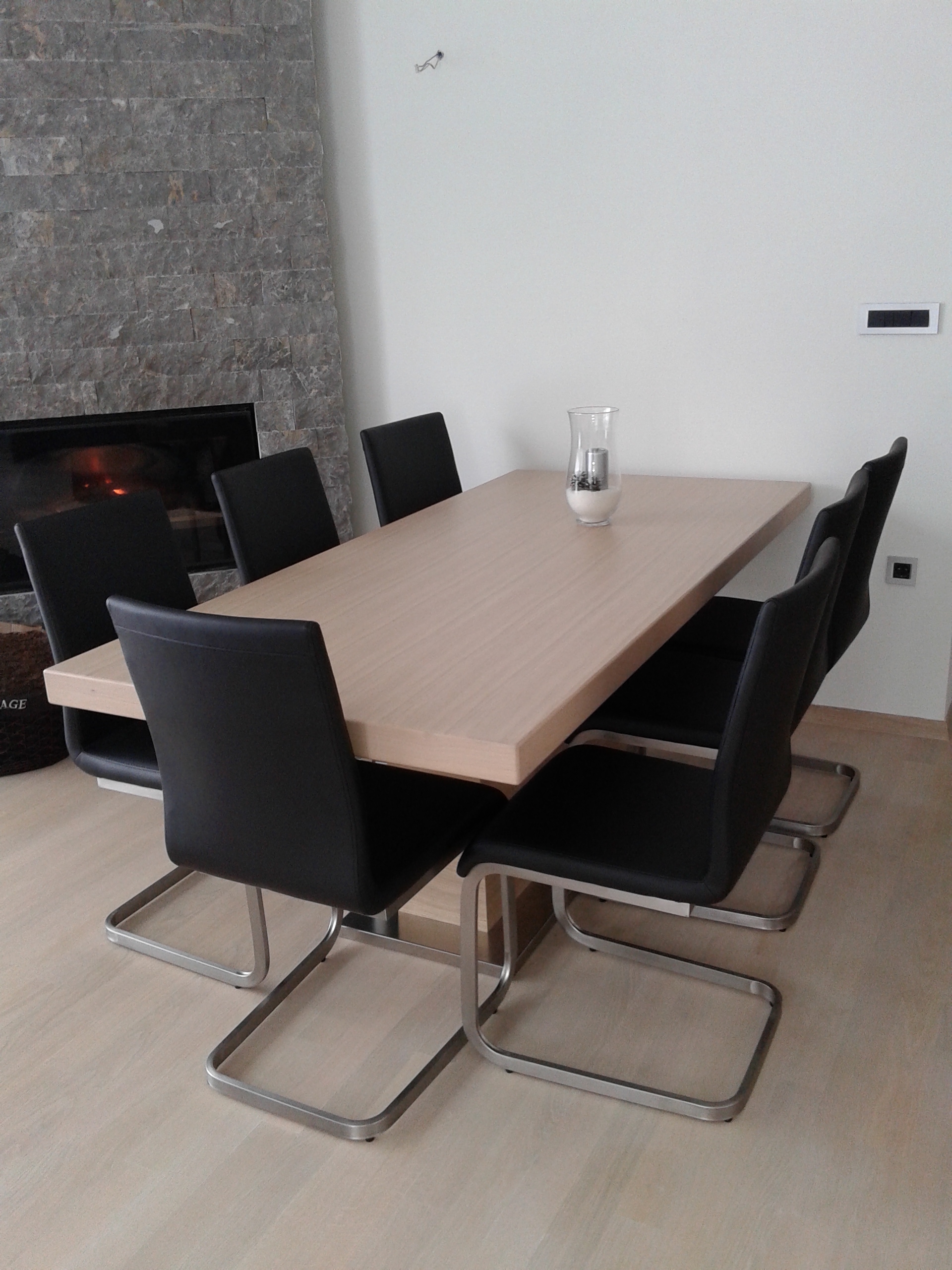 - Miza je iz beljenega hrasta (furnir) z masivnimi hrastovimi nalimki
