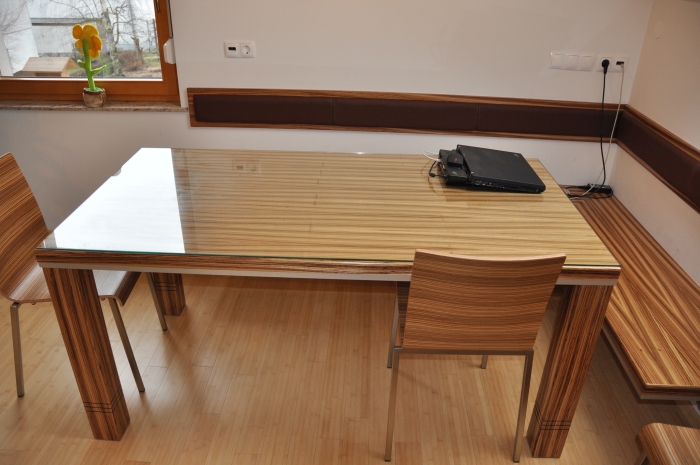- Miza je narejena iz furnirja zebrano v kombinaciji z masivnimi zbrano nogami