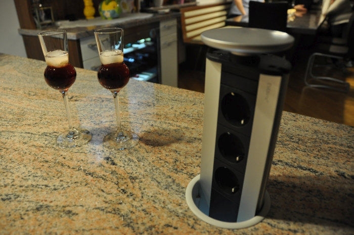 - Pult je iz naravnega kamna, v katerem je vgrajena izvlečna vtičnica