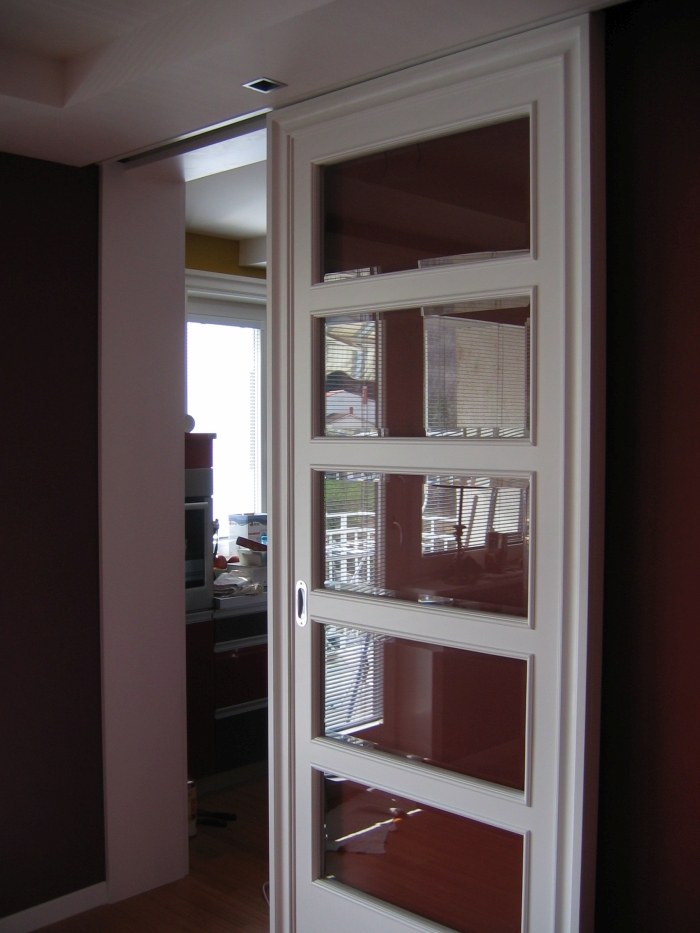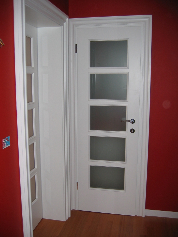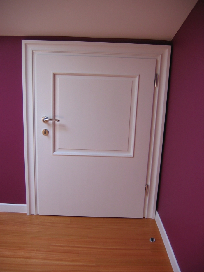 • Belo barvan MDF z masivnimi bordurastimi letvami okoli podboja