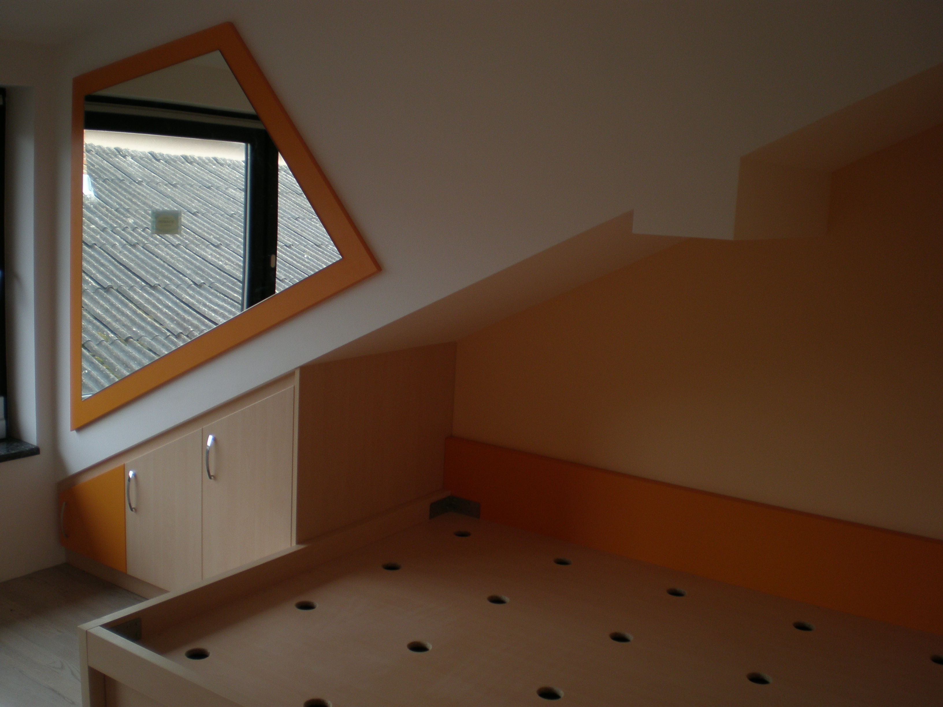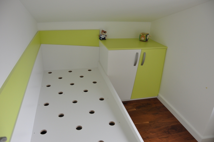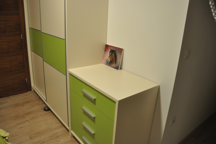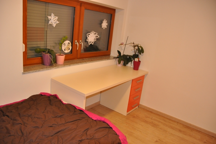 Čez 1 leto pa nama je Jure naredil tudi spalnico (vgradno omaro, posteljo in nočni omarici).