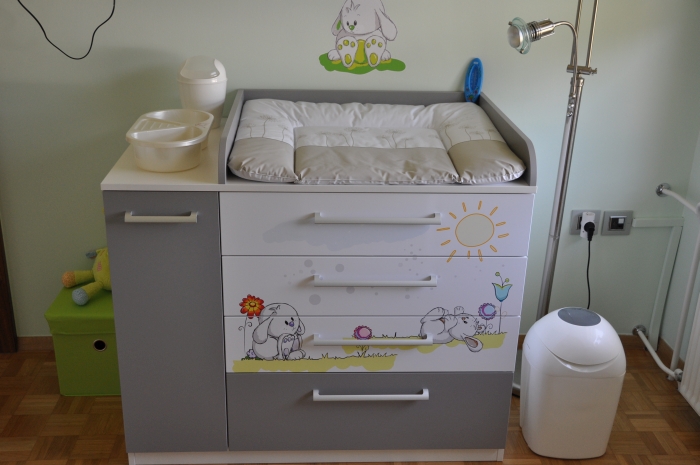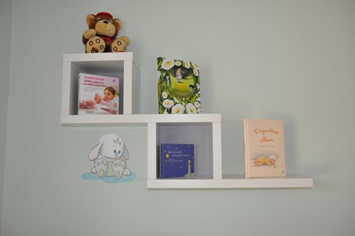- V sodelovanju s Fletno štacunco so na stolih prilepljene ročno izdelane črke z napisom imen in so narejene po željah naročnika, ki sovpadajo z nalepkami v otroški sobi