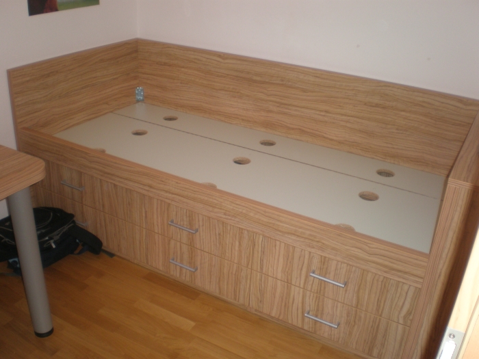 • Zadnji del posteljnega dna se dviguje, da dobimo prostor za shranjevanje