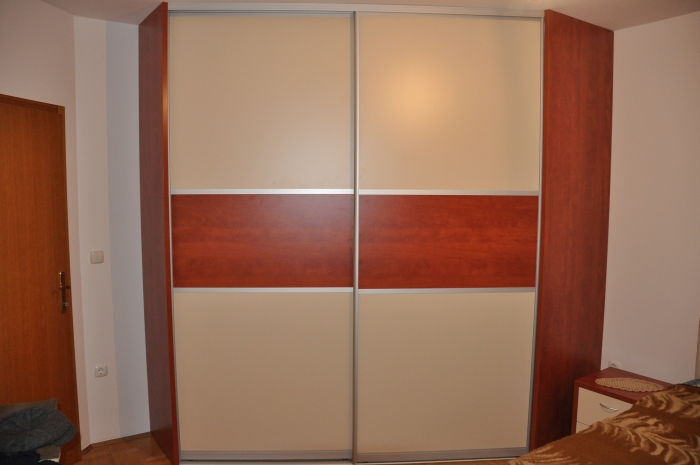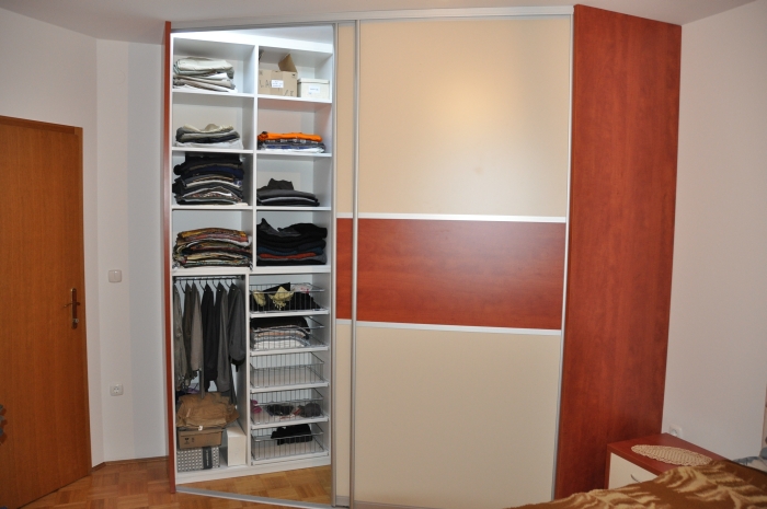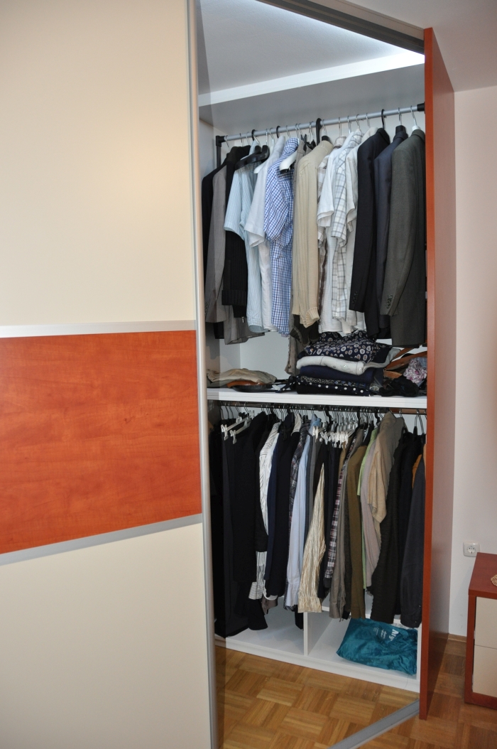 • spalnica je zasnovana tako, da smo z vgradno omaro dejansko naredili garderobni prostor