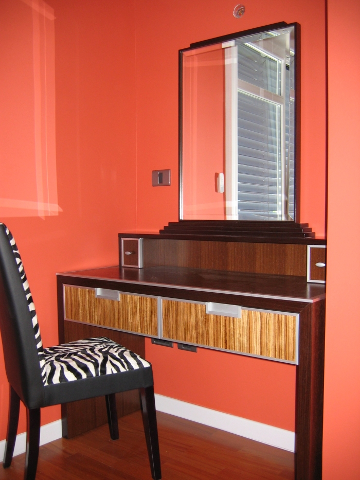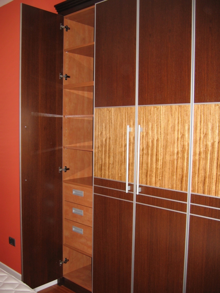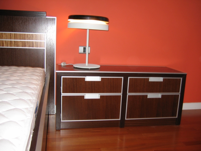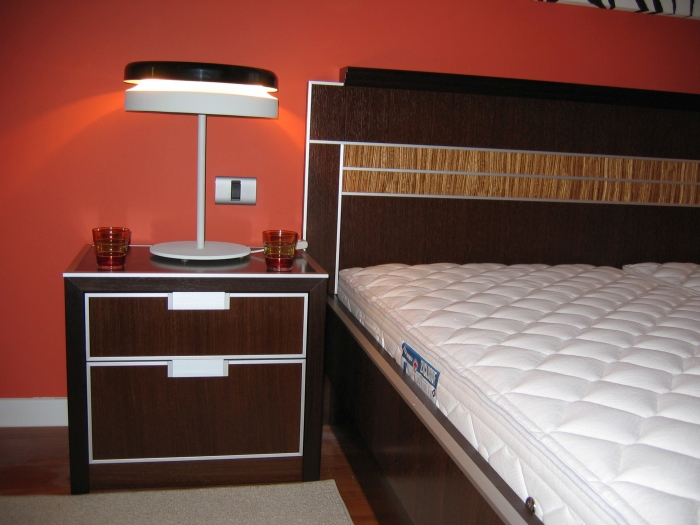 • narejeno iz furnirja wenge v kombinaciji s furnirjem zebrano, ki poskrbi za popestritev in poživitev spalnice