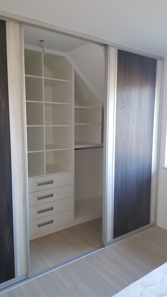 • z drsnimi vrati proizvajalca Raumplus smo dosegli, da ima spalnica svoj garderobni prostor