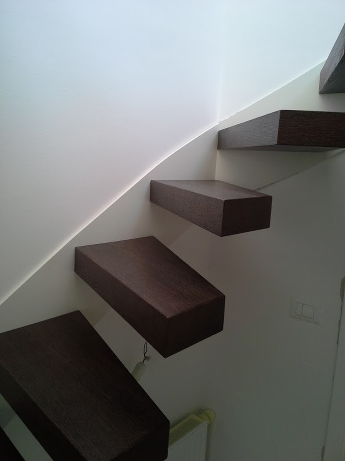 • konzolne hrastove stopnice, pritrjene na kovinske konzole